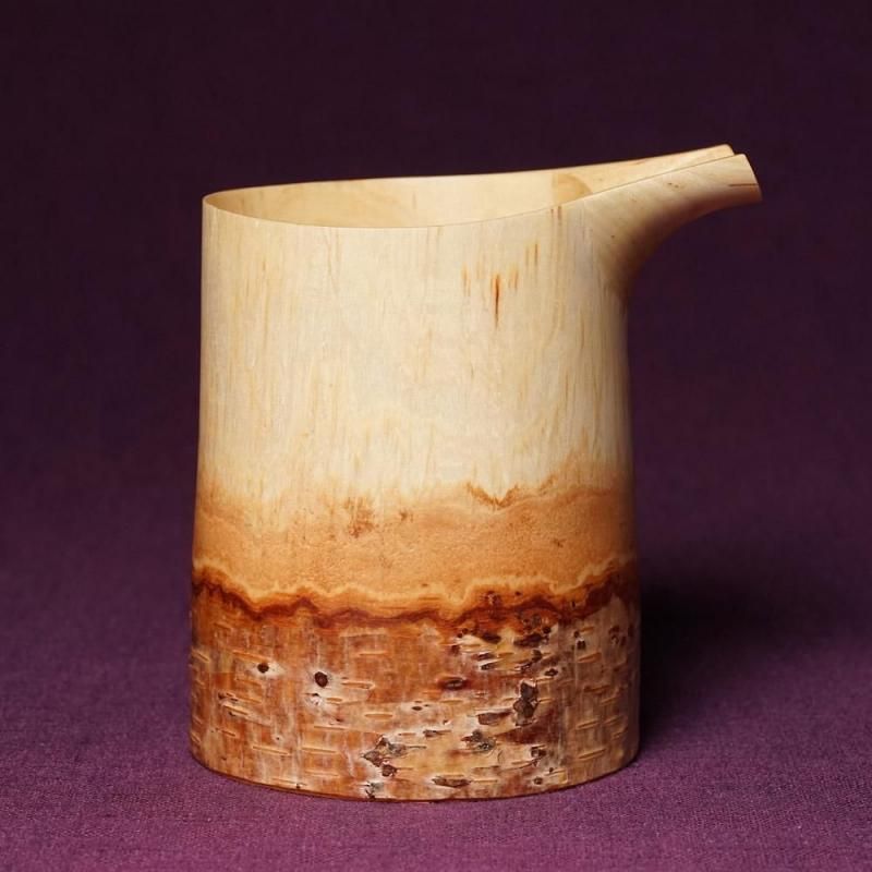 天然の白樺を使い手間をかけ丁寧に仕上げられたこの片口は2008年 高岡クラフトコンペでグランプリに輝き、雑誌『Pen』 などでも取り上げられています。
