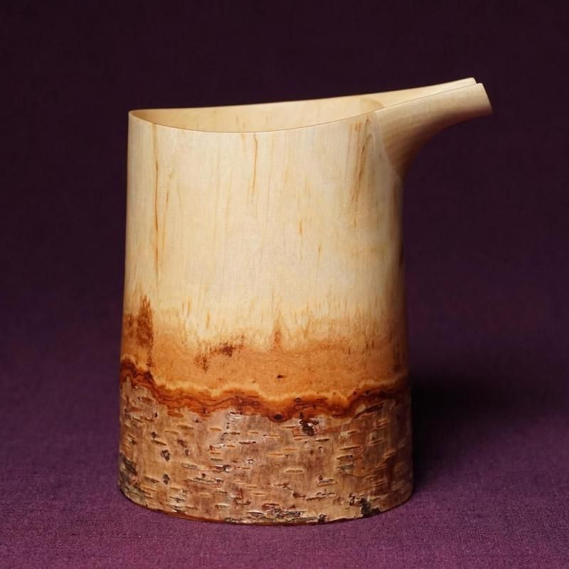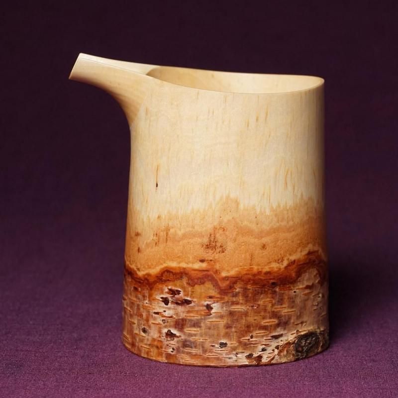 天然の白樺を使い手間をかけ丁寧に仕上げられたこの片口は2008年 高岡クラフトコンペでグランプリに輝き、雑誌『Pen』 などでも取り上げられています。