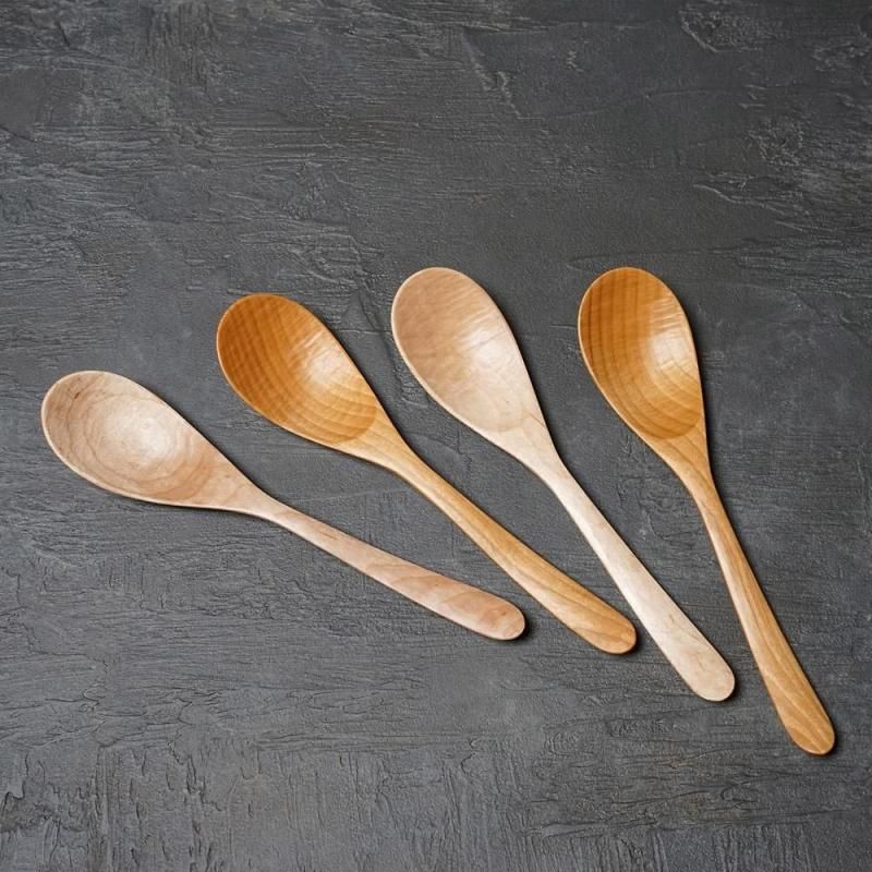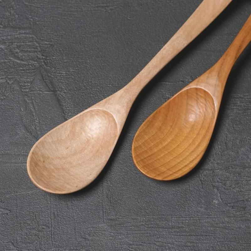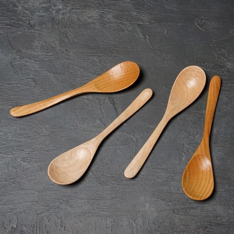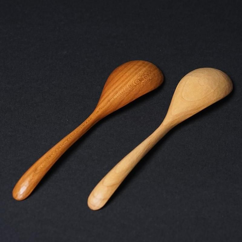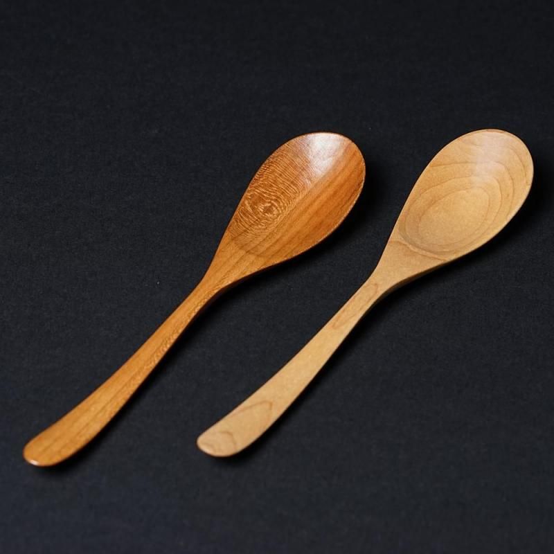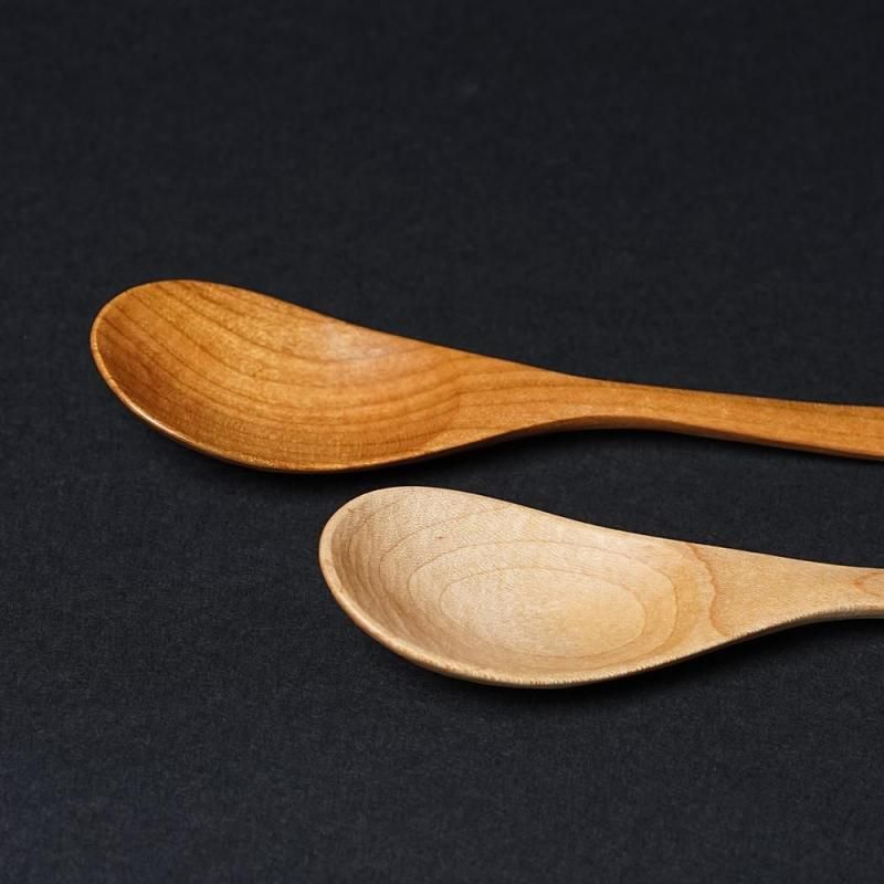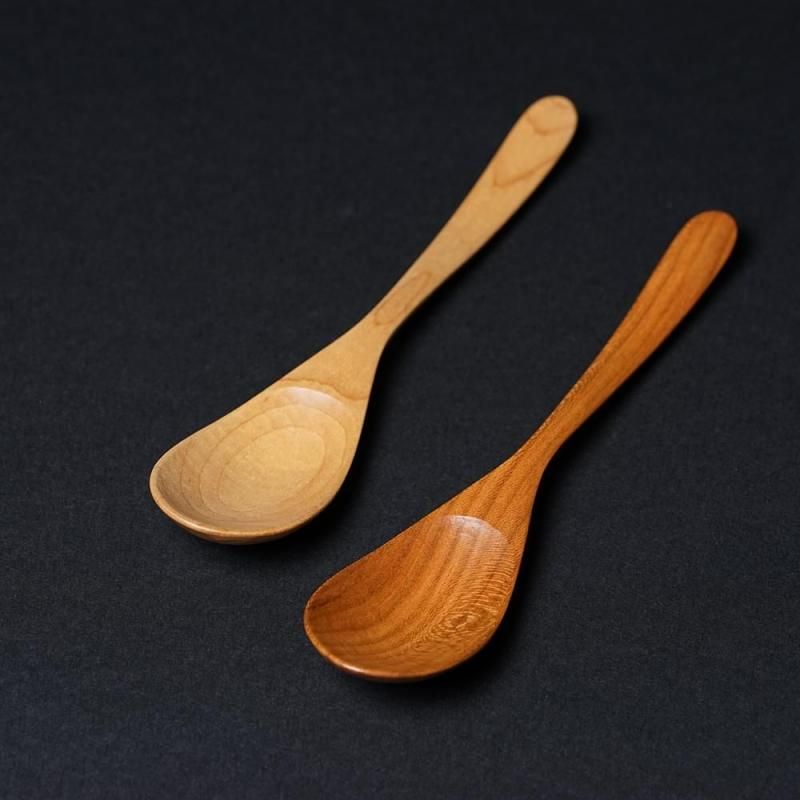 木目の美しいイタヤカエデとサクラからひとつひとつ丁寧に削りだされた木のスプーンです。